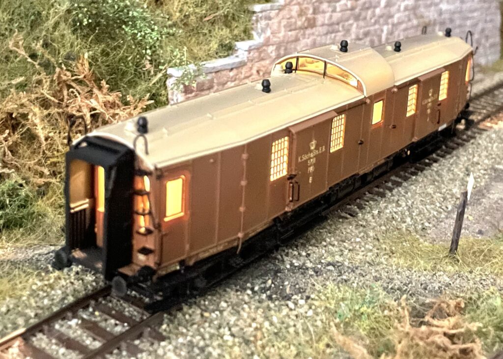 Das Modell wird umgebaut auf Basis des Brawa Modells (45400 usw.) des Pw4ü Pr 06. Dieses Modell kann auf verschiedene Weise umgebaut werden, so dass die Originalversion oder die spätere Version mit glattem Dach und elektrischer Beleuchtung gebaut werden kann.